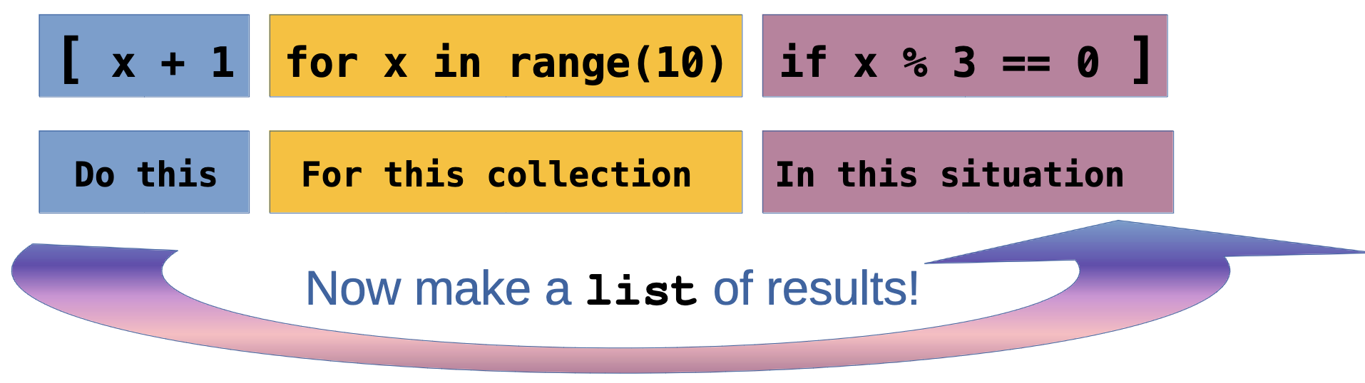 # Output: ['purple', 'orange', 'blue']Lists are flexible - you can add, remove, and change items easily!