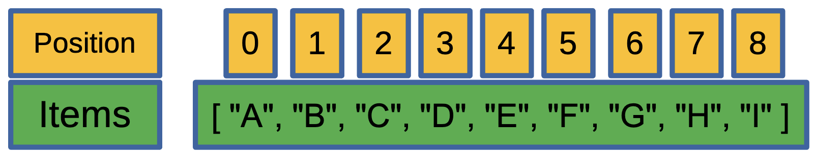 # Accessing elements (zero-indexed!)